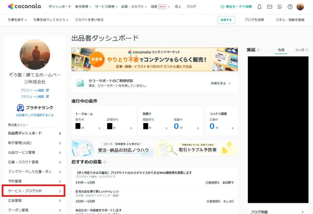 ココナラの管理画面ので、サービスの閲覧数を確認できます。まずはそこからチェックしてみてください。